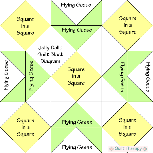 Jolly Bells Block Diagram Free Pattern at QuiltTherapy.com! Published December 7, 2018 at 536 × 536 in Countdown to Christmas 12/10/2018: Jolly Bells Quilt Block Jolly Bells Block Diagram Free Pattern for 12″ finished quilt block at QuiltTherapy.com!