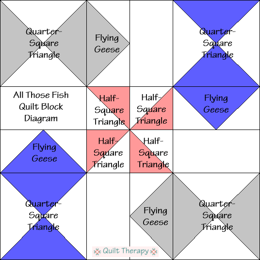 All Those Fish Quilt Block Diagram is a Free Pattern for 12″ finished quilt block at QuiltTherapy.com! Published January 12, 2022 at 536 × 536 in Quilted Kitchen: All Those Fish Quilt Block & Crispy Cod Recipe All Those Fish Quilt Block Diagram is a Free Pattern for 12″ finished quilt block at QuiltTherapy.com!