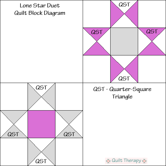 Lone Star Duet Quilt Block Diagram Free Pattern for 12″ finished quilt block at QuiltTherapy.com! Published February 16, 2019 at 536 × 536 in Lone Star Duet Quilt Block Diagram Free Pattern for 12″ finished quilt block at QuiltTherapy.com! Lone Star Duet Quilt Block Free Pattern for a 12″ quilt block at www.QuiltTherapy.com!