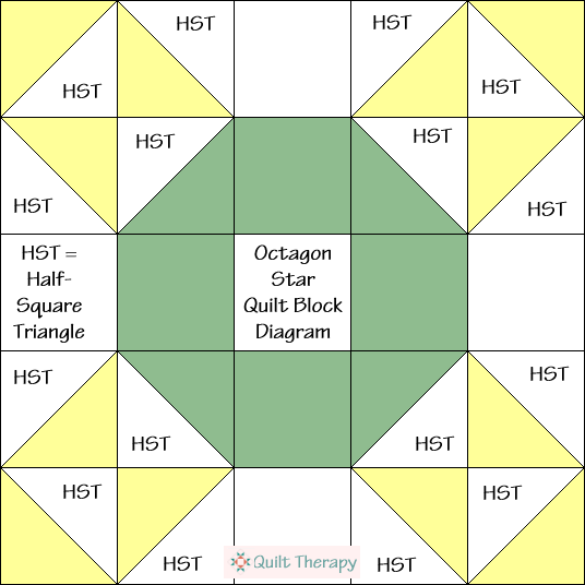 Octagon Star Quilt Block Diagram Free Pattern at QuiltTherapy.com! Published March 24, 2019 at 536 × 536 in Octagon Star Quilt Block Diagram Free Pattern at QuiltTherapy.com! Octagon Star Quilt Block Diagram Free Pattern for 12″ finished quilt block at QuiltTherapy.com!